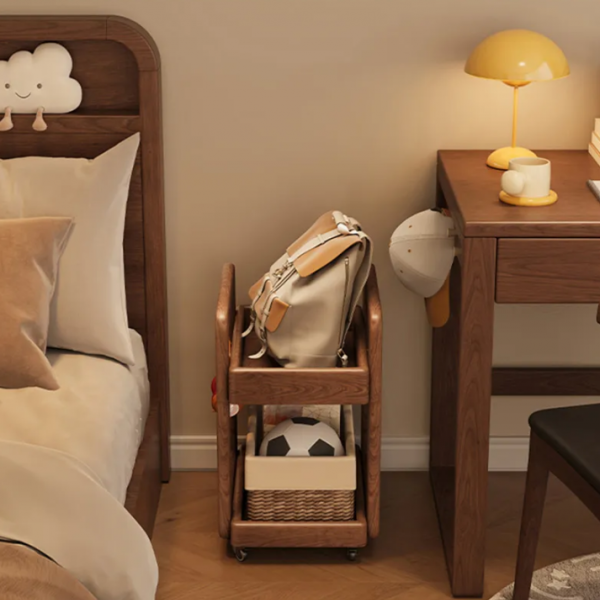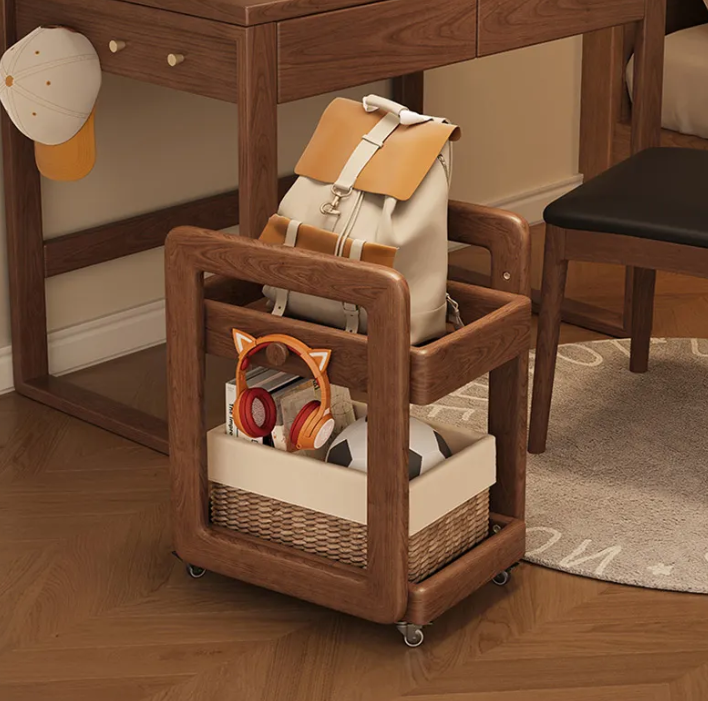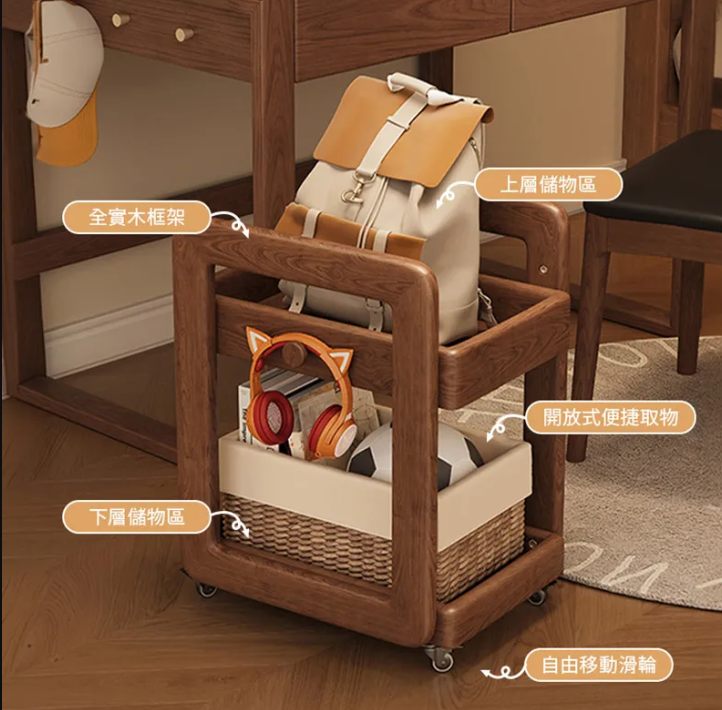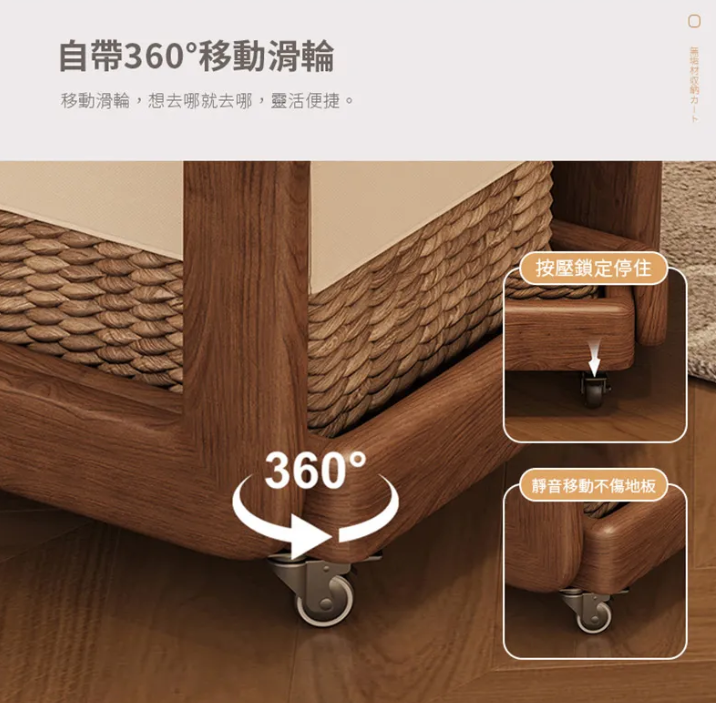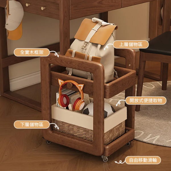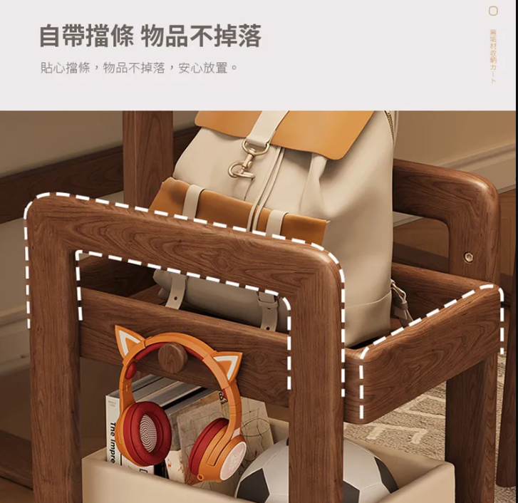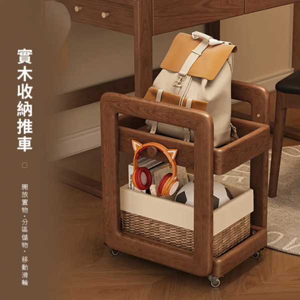實木收納推車
