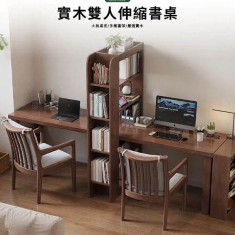 實木雙人伸縮書桌