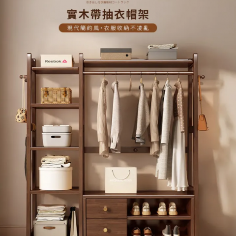 實木帶抽衣帽架